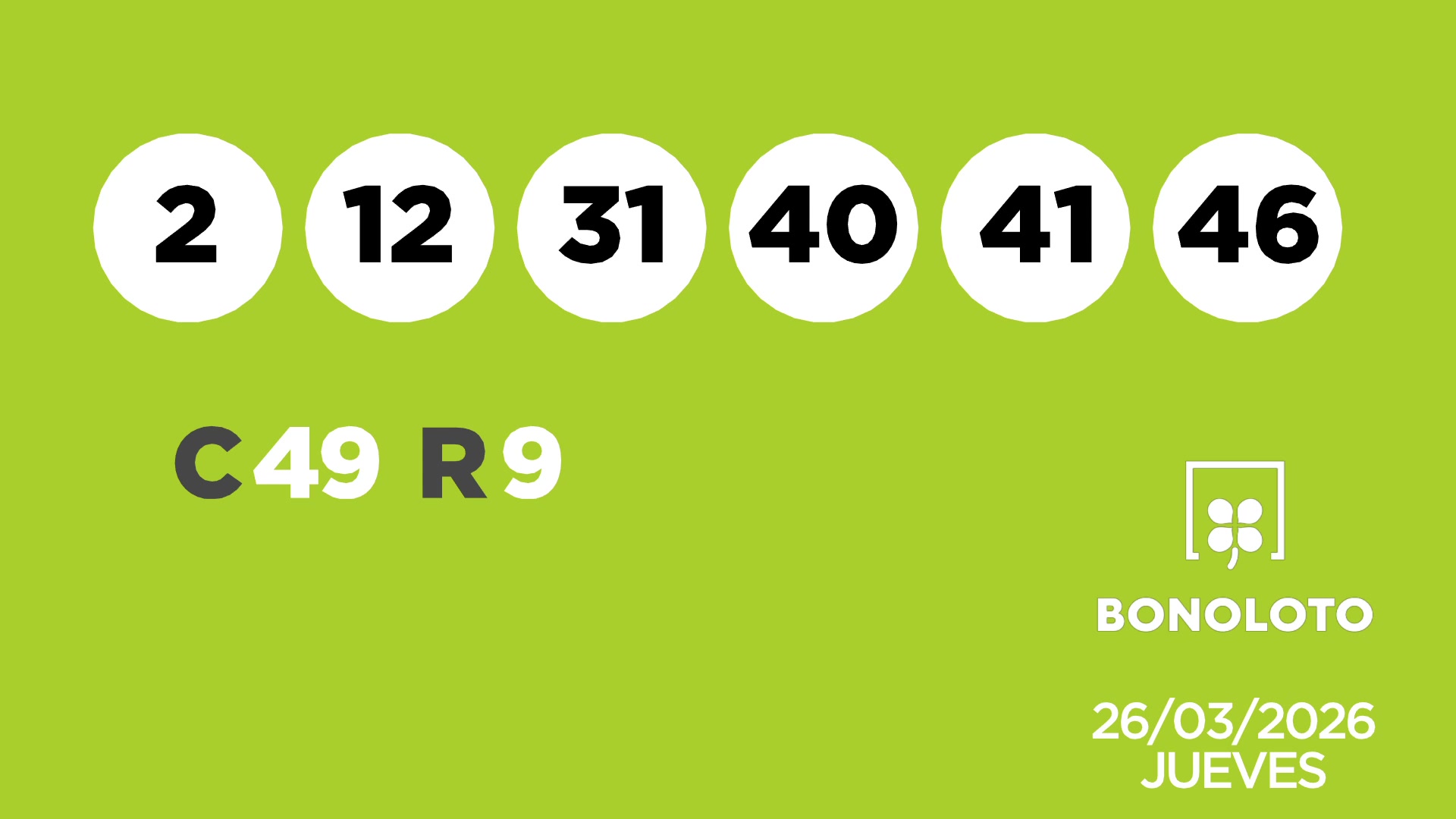 Sorteo de la Lotería Bonoloto del 26/03/2026