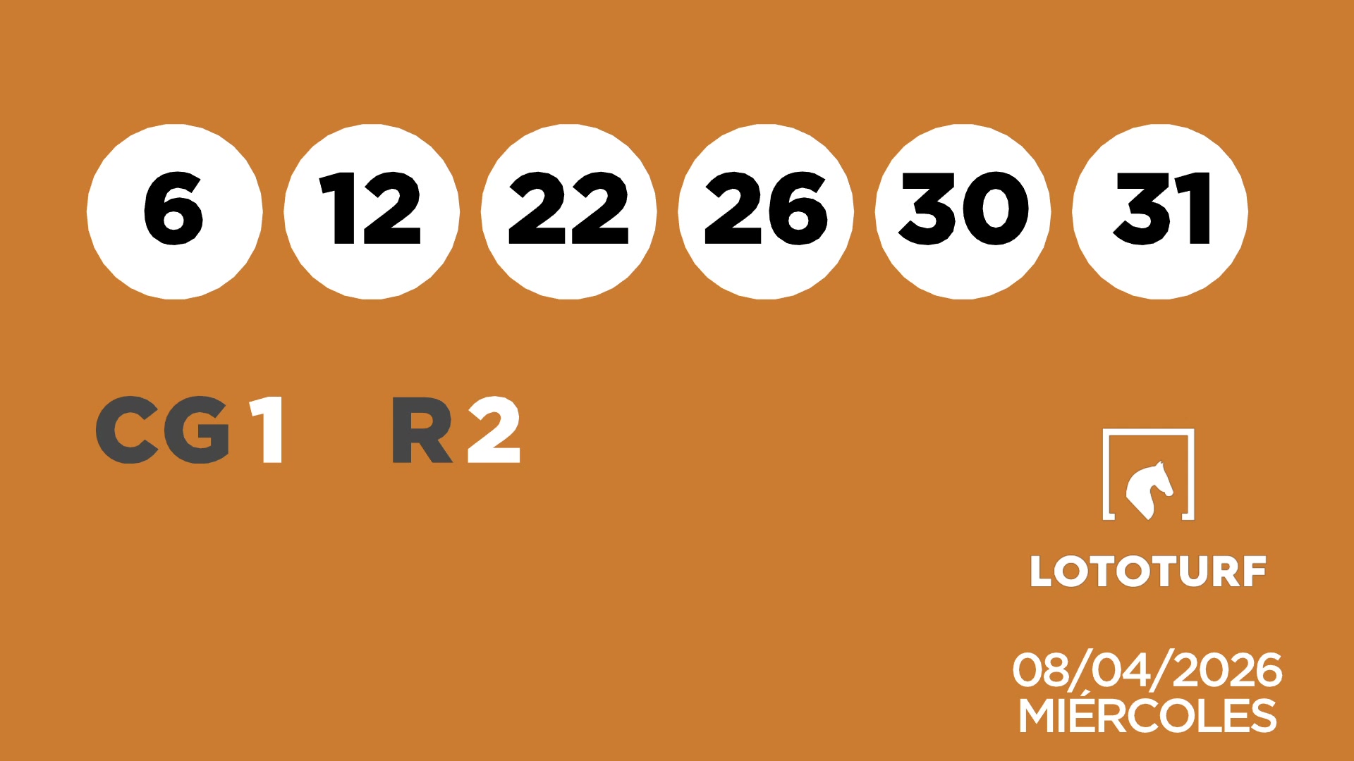 Sorteo de Lotería Lototurf: 08/04/2026