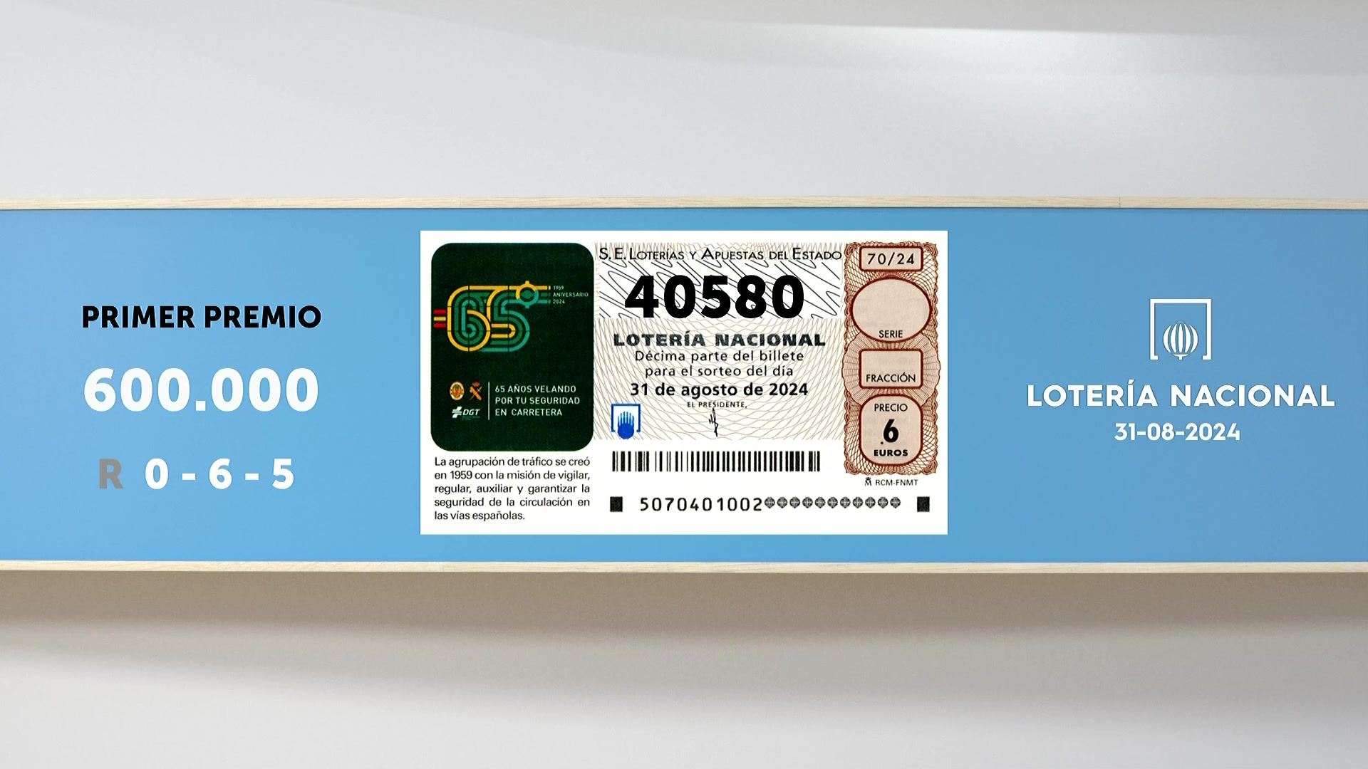 Sorteo de la Lotería Nacional del 31/08/2024