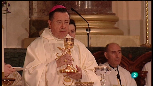 Retransmisión de los Santos Oficios del Jueves Santo desde la Catedral Castrense de Madrid. Los actos serán oficiados por el arzobispo castrense D....
