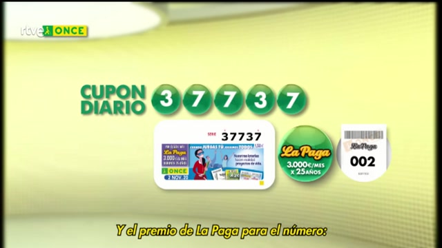 El número ganador del sorteo de la ONCE de hoy es el 37737 y la paga 002.