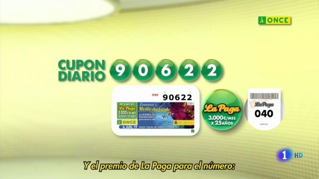 El número ganador del sorteo de la ONCE de hoy es el 90622 y la paga 040.