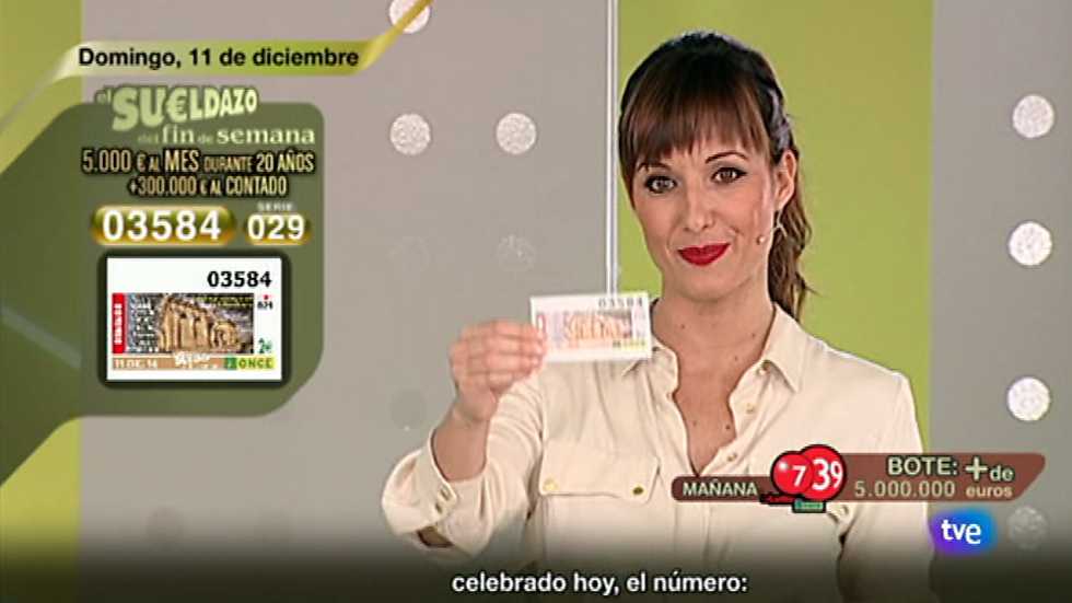 El número ganador del sorteo de la ONCE de hoy es el 03584 Sueldazo 029.