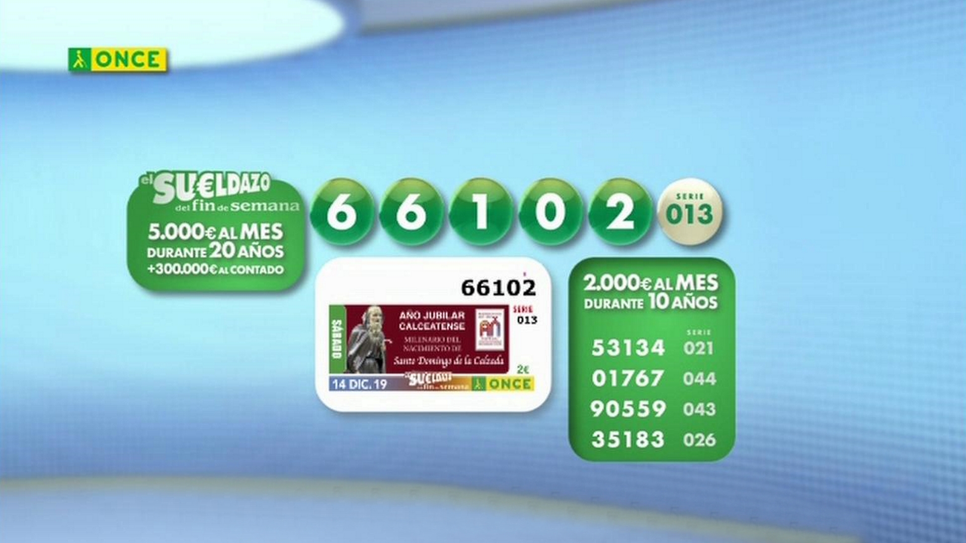Sorteos ONCE - Sorteo ONCE - 14/12/19 Sorteos ONCE - Sorteo ONCE - 14/12/19