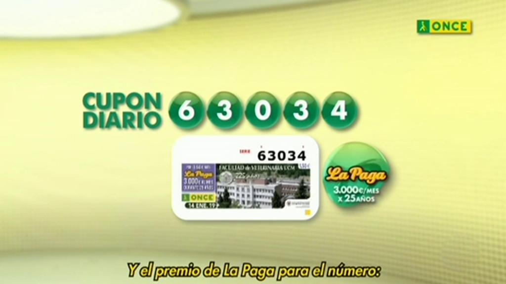 El número ganador del sorteo de la ONCE de hoy es el 63034