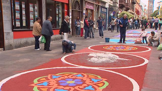 Las alfombras hechas con motivo del Corpus Christi adornan muchos rincones del Archipiélago. Como éstas de Vegueta en la capital grancanaria, o las...