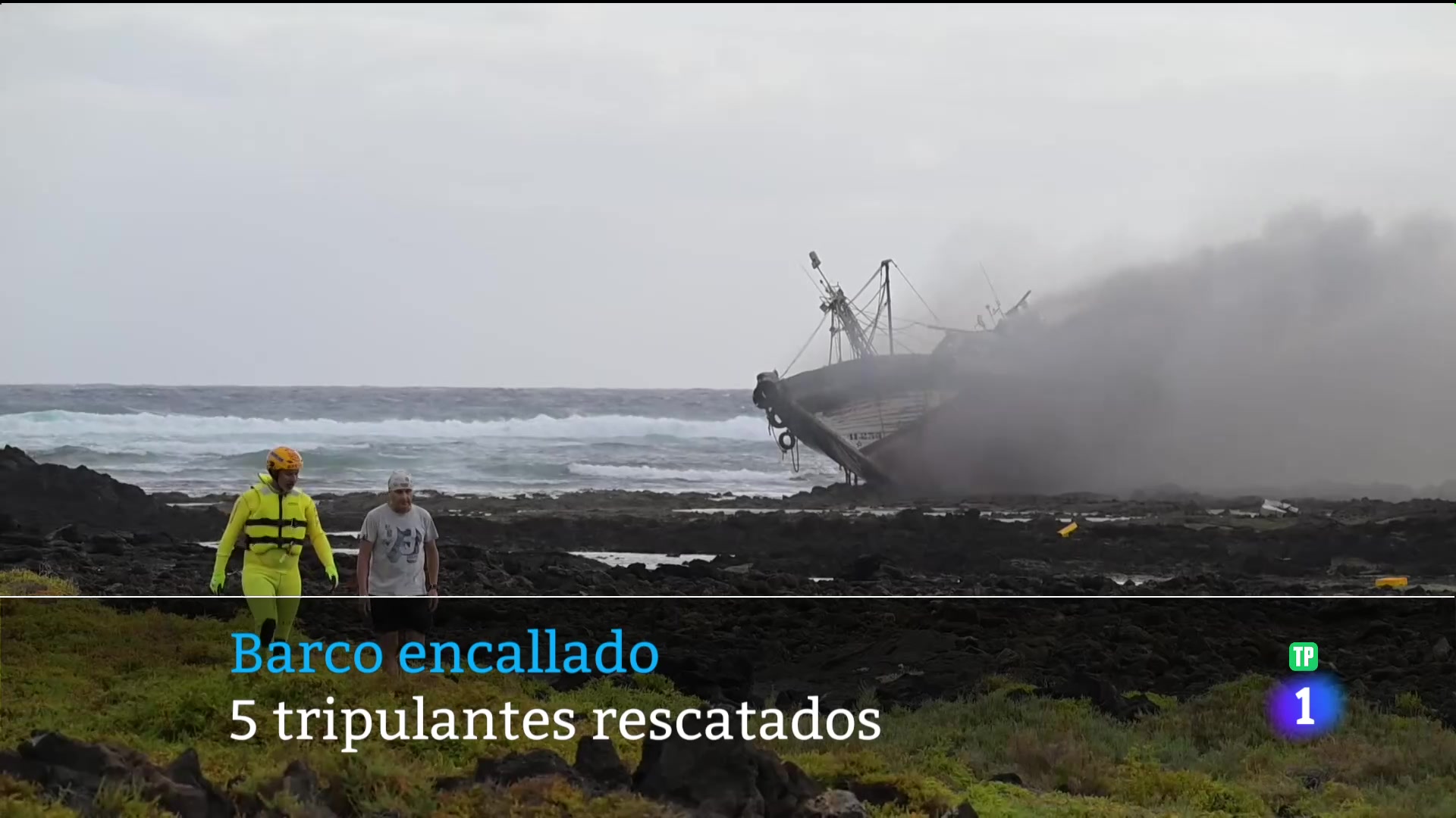 Un atunero ha encallado en la costa norte de Lanzarote y horas después se ha prendido fuego.