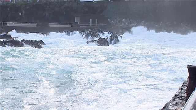 Así esta hoy el mar en Canarias, tras el paso de la borrasca Ana. En el Puerto de la Cruz en Tenerife muchos turistas se han visto sorprendidos por...