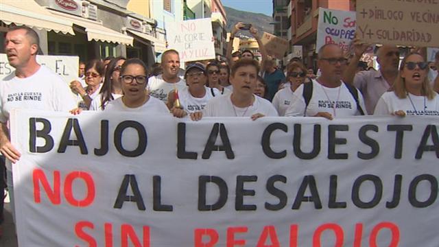 Los vecinos de Bajo La Cuesta se han manifestado en protesta por la orden de desalojo del Ayuntamiento, por el riesgo de desprendimientos en la...