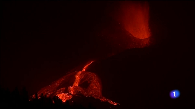 La colada de lava que supero ayer la montaña de La Laguna sigue recibiendo material lávico que fluye a 1,3 kilómetros por hora. La Palma continúa...