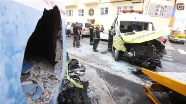 Pudo ser una auténtica tragedia.Una ambulancia que cubría un servicio prioritario en Vecindario, en Gran Canaria chocó contra un coche y se empotró...
