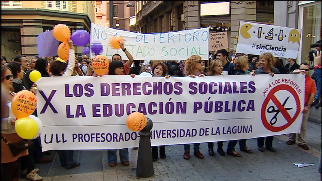 Protestas en el Parlamento de Canarias, dentro y fuera de la cámara de trabajadores públicos y del personal investigador y docentes universitarios....