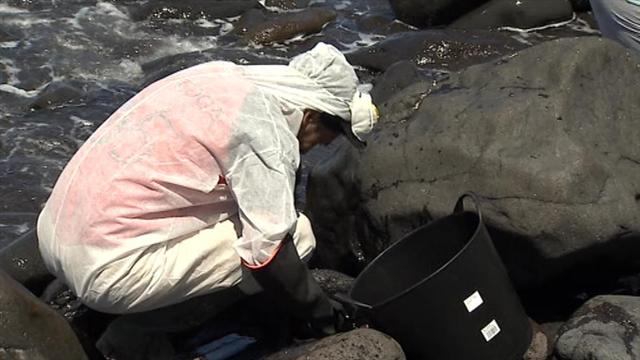 Estas son las últimas imágenes de la mancha de fuel tomadas esta mañana por un equipo de TVE en Canarias. En tierra, se han recogido más de 120...