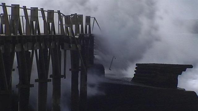 Así ha quedado la escollera de La garita, en Arrieta, tras el paso del temporal de viento y olas que afecta al archipiélago desde hace dos días....