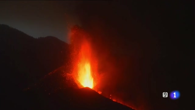 Hasta 600 metros de altura ha alcanzado la lava a su salida del cono principal que se ha derrumbado sobre si mismo... Es una de las últimas...