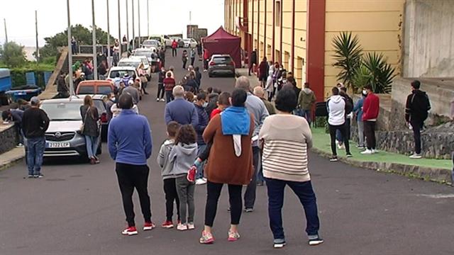 Colas en La Palma para hacerse las pruebas de la Covid, después de que ayer se detectase un brote de 20 afectados en la Unión Deportiva...