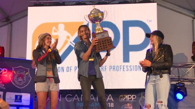 Iballa Ruano celebró el título de campeona del Mundo del Circuito Profesional de Paddle Surf en la modalidad de olas, que tuvo lugar en la Playa de...