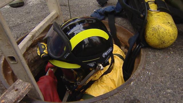 Son los bomberos de la capital grancanaria en una imágen poco habitual. Esta mañana han tenido que bajar a las alcantarillas de la ciudad para...