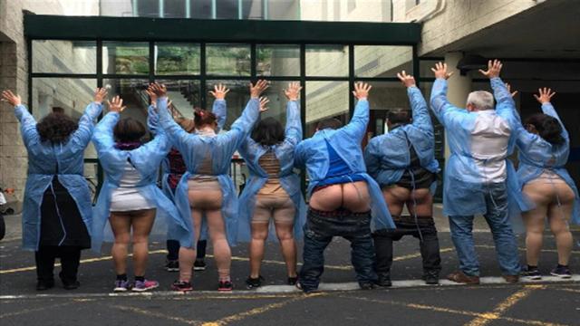 Enseñan el trasero porque así, dicen, ha dejado el gobierno a la sanidad en Canarias. Con el culo al aire. Son miembros de la asociación por la...