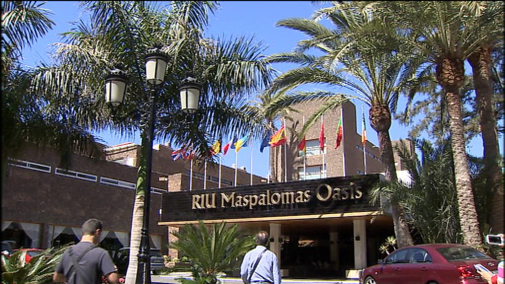 El Hotel Oasis Maspalomas ha reabierto hoy, con una estrella menos y con servicio de todo inclu\f1\'ed\f0 do. Los primeros 50 clientes son turistas...