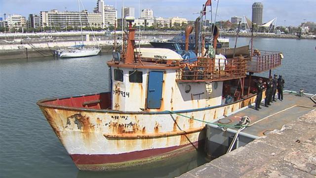 Es lo que la policía denomina "barco de último viaje". Embarcaciones antiguas que se utilizan para transportar droga. Esta ha llegado hoy al Puerto...