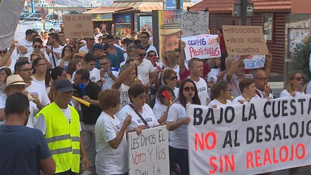Los vecinos de Bajo La Cuesta se han manifestado en protesta por la orden de desalojo del Ayuntamiento, por el riesgo de desprendimientos en la...