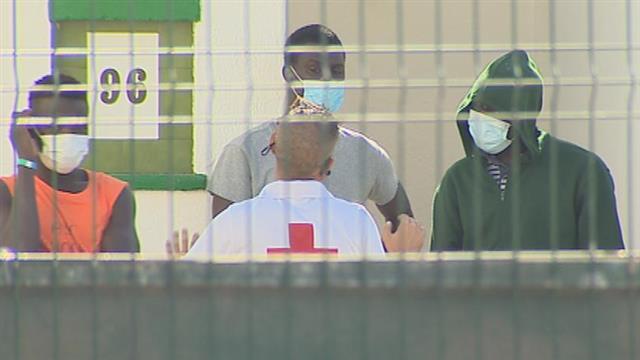 Comienza el desalojo de las mas de 2.300 personas que se hacinan desde hace días, algunos semanas, en el muelle de Arguineguín, en Gran Canaria....