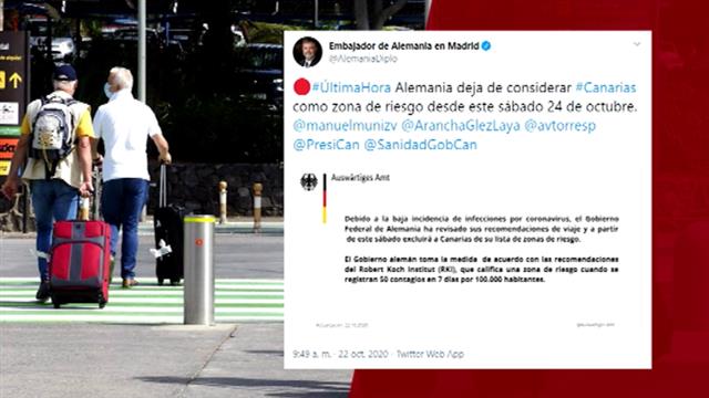 Con este tweet Alemania anunciaba que levantaba el veto a Canarias. Las islas quedan fuera de la zona de riesgo por covid-19. A partir del próximo...