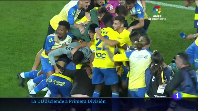 Este era el momento en el que los jugadores celebraban en el campo el ascenso a Primera División después del pitido final en el minuto 96 de...