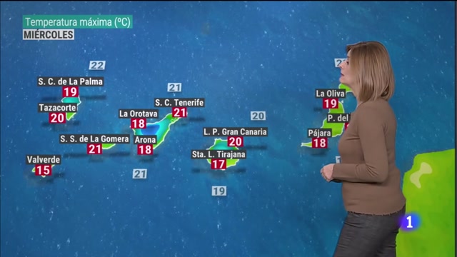 Mañana seguimos con el anticiclón al norte de la península, desde esa posición genera flujo el componente noreste que dejará otra vez a lo largo del jueves nubes más desarrolladas en la vertiente norte, apertura de claros en el sur, cielos despejados en Lanzarote y en Fuerteventura con una ligera calima. El viento de componente este-noreste soplando con rachas moderadas y las temperaturas un poquito más altas, 22ºC a mediodía en Santa Cruz de Tenerife, 20ºC de máxima en Las Palmas de Gran Canaria.