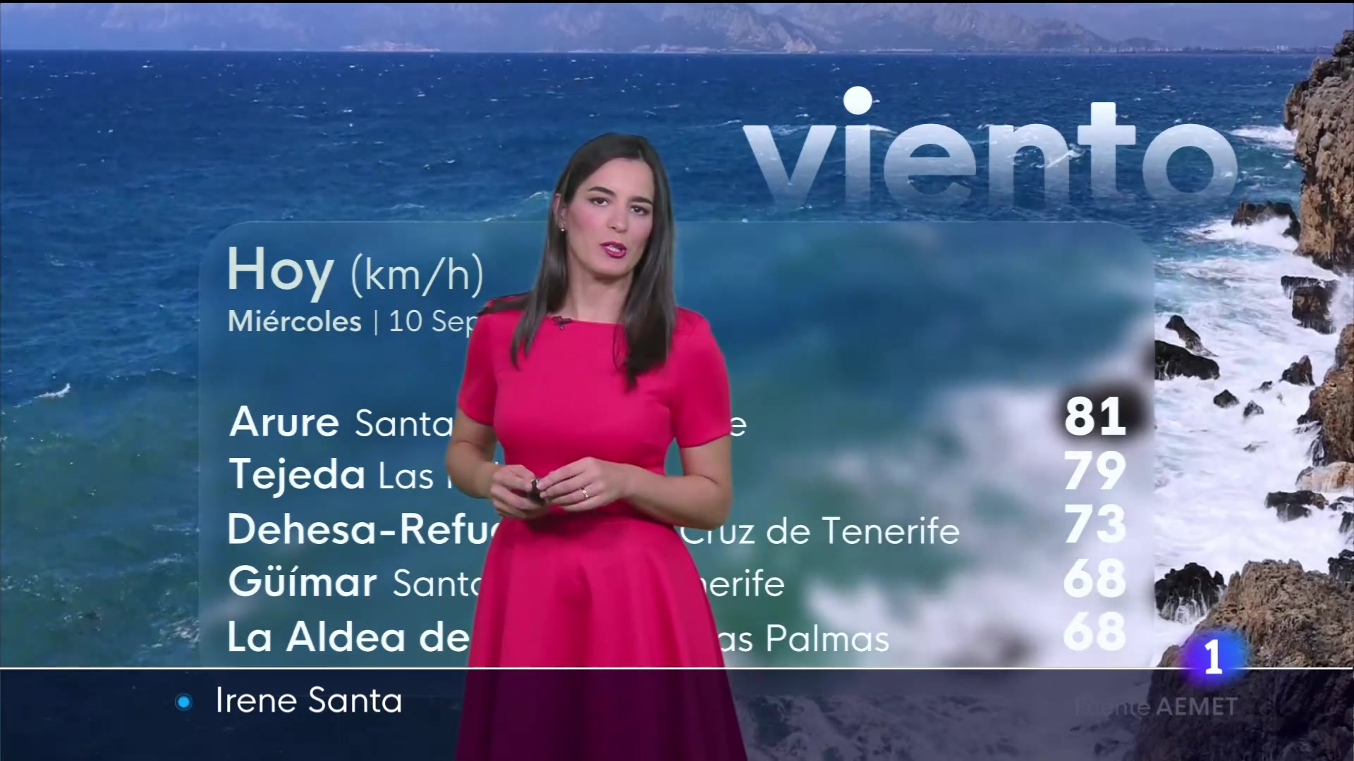 10/09/2025 00:01:04Hoy volvemos a tener registros de rachas de viento superiores a los 70 kilómetros por hora. Los alisios están arreciando y seguirán haciéndole las siguientes horas, quizá mañana todavía sigan presentes, pero con algo menos de intensidad. También hemos tenido algunas lluvias de carácter débil, acumulaciones en general por debajo del litro cuadrado y en las islas centrales. A lo largo de la tarde todavía podrían producirse, sobre todo, hacia la zona norte de Tenerife, serían algo más probable, encontramos bastantes nubes en norte y cielos más abiertos cuanto más al sur. Hoy tenemos una jornada, como pueden ver, marcada por esos vientos alisios con temperaturas máximas en general entre los 25 y los 27 grados en puntos del litoral. Y tenemos mañana una jornada en la que las temperaturas van a ser bastante similares, no esperamos demasiados cambios. Vamos a tener en el cielo algunas nubes nuevamente en la zona norte, sobre todo en el norte de las islas de mayor relieve, como por ejemplo en Gran Canaria podremos tener algunas gotas.