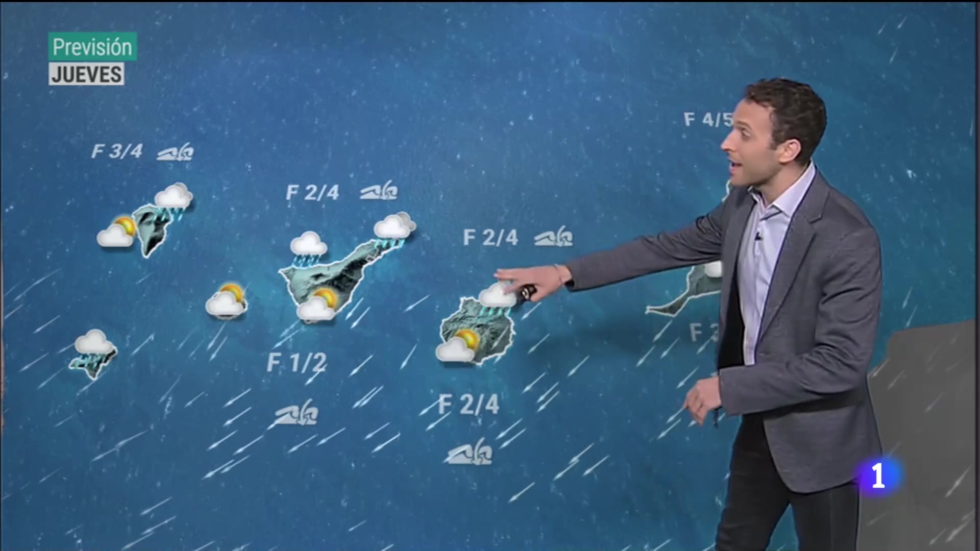 12/01/2023 00:01:10Jornada más inestable en una parte del archipiélago canario marcada por estas lluvias que han dejado ya más de 20 litros por metro cuadrado en puntos como, Vega de San Mateo, 14 en Tejeda, o 7 por ejemplo en El Paso. Durante la tarde de hoy seguiremos hablando de algunas lluvias sobre todo concentradas hacia el norte de las islas de mayor relieve, aunque también hablaremos de algunos chubascos ya más débiles en puntos de la isla de Lanzarote. Todo esto con temperaturas que de nuevo van a estar en general por encima de los 20 grados. Mañana eso si, vuelve a estabilizarse poco a poco el tiempo, vuelve a ganar terreno las altas presiones y seguiremos hablando de flujo de noreste aunque insistimos, ya con menos probabilidad de chubascos, alguno puede caer a primeras horas en zonas del norte de la isla de Tenerife y también de Gran Canaria, pero en general hablaremos ya vemos una jornada más tranquila aunque con algunos intervalos de nubes, sobre todo durante la primera mitad del día. Y con temperaturas en Arrecife podrían volver a llegar hasta los 22 grados, 23 esperamos en Las Palmas de Gran Canaria, 22 por ejemplo en Santa Cruz de Tenerife.