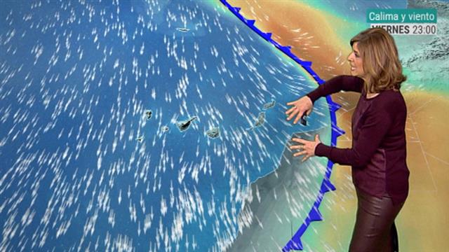 14/02/2019 00:01:06Jornada ventosa en las Islas Canarias con rachas de viento próximas a los 100 km-hora en Gomera. Como pueden ver se han superado los 85 km-hora en Lanzarote, Fuerteventura. Un viento que sopla de componente este, sureste y que sigue arrastrando ese polvo en suspensión, esa calima que va a ir a más durante las próximas horas en las islas orientales, Lanzarote, Fuerteventura, mientras que por el oeste vemos como se va aproximando esa traza de precipitación. Corresponde a este frente que a lo largo de la jornada de mañana va a ir barriendo el Archipiélago canario de oeste a este, dando lugar a un giro de viento que va a rolar a componente norte, noroeste en todas las Islas Canarias, irá alejándose de Canarias esa calima, ese polvo en suspensión, dejando un ambiente menos turbio. Mañana se espera un aumento de las nubes que irán dejando precipitaciones de oeste a este. Llegarán a las islas orientales a partir de la tarde y además bajan las temperaturas que se quedan en 21 ºC a mediodía en Santa Cruz de Tenerife, 22 ºC de máxima en Las Palmas de Gran Canaria.