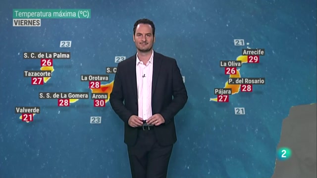 15/07/2022 00:01:15Afortunadamente en nuestras islas vamos a tener temperaturas veraniegas, altas pero sin ese calor extremo que estamos viviendo en otras zonas del país. Las temperaturas máximas previstas para la tarde de hoy superan los 25ºC, pero en pocos casos van a superar los 30ºC, en algunos puntos del centro, interior y sur de Gran Canaria. En el cielo pocas novedades, sol, un poco de calima en altura en arias orientales, con los vientos alisios que siguen soplando. La calima en altura nos va a seguir acompañando durante el fin de semana hacia la zona oriental, Lanzarote, Fuerteventura y la Graciosa. El domingo quizás se intensifique más, pero en cualquier caso no esperamos grandes concentraciones de polvo en suspensión.