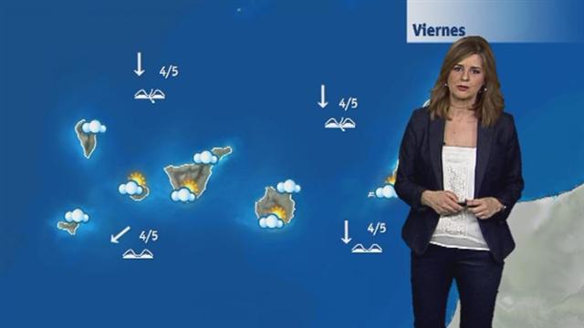16/03/2018 00:01:11Llega el fin de semana y nos deja tiempo estable en el Archipiélago canario. Hoy tenemos más nubes que vienen impulsadas por los vientos de componente norte, nubes compactas. Pueden caer algunas gotas en las próximas horas en la cara norte pero son poco probables las precipitaciones. Viento del norte soplando moderado con rachas fuertes. Tenemos el anticiclón al oeste del Archipiélago canario ejerciendo su influencia sobre las islas dejando un panorama de estabilidad. Algunas nubes retenidas en la cara norte. En las islas occidentales hacia el noroeste el viento gira a componente noroeste. En las islas orientales viento del norte, flojo con rachas moderadas. Temperaturas máximas que se mueven entre los 17ºC de Valverde, en el Hierro, y los 22-21ºC que van a marcar capitales como Santa Cruz de Tenerife, Las Palmas de Gran Canaria o el aeropuerto de Lanzarote. Para el domingo viento del norte acumulando nubes en la cara norte del Archipiélago. En el resto ambiente poco nuboso o despejado y más templado, tanto las más mínimas como las máximas tienden a subir.