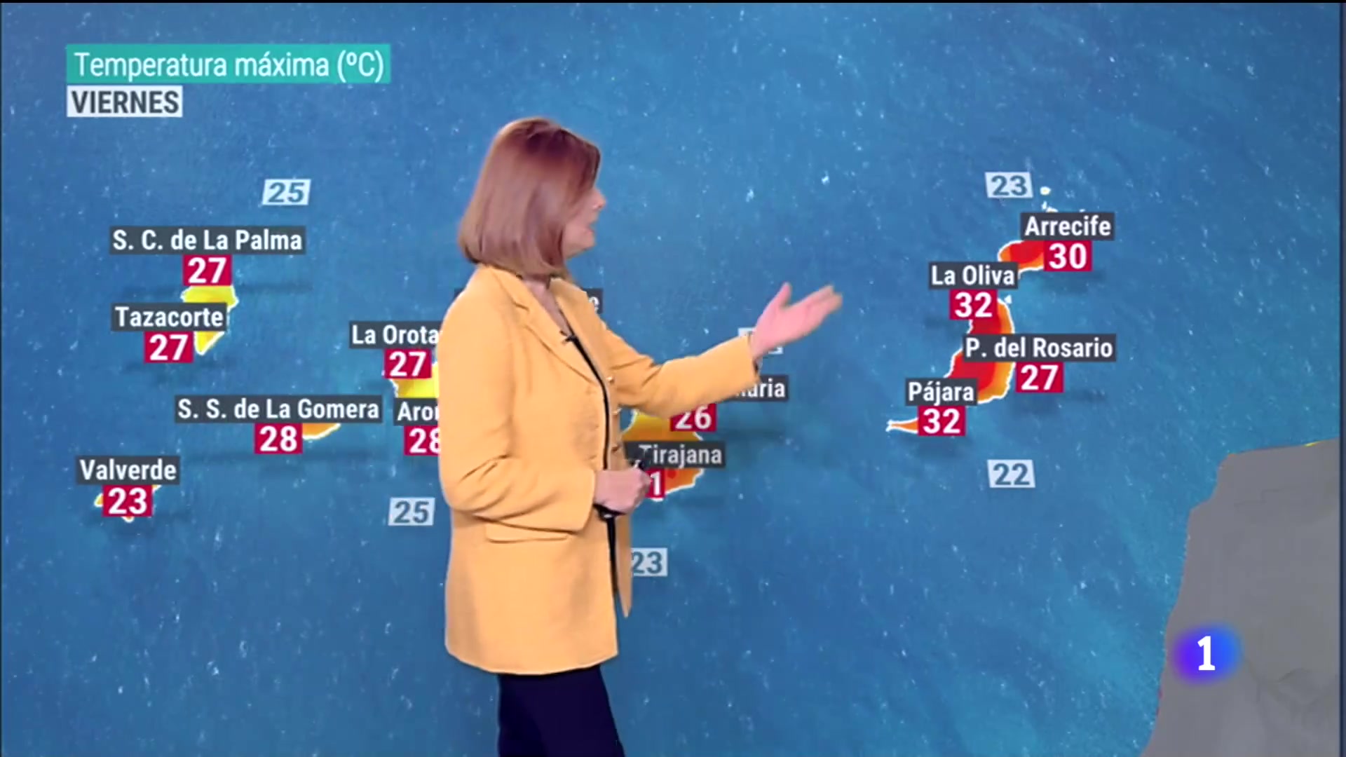 28/10/2022 00:00:53Tenemos por delante un fin de semana de tiempo en general tranquilo en las Islas Canarias con una tendencia a subir las temperaturas a lo largo de esta jornada, de forma ligera seguimos con calor, se pueden superar los 30ºC en el sur de Gran Canaria, en Fuerteventura, se puede alcanzar en Arrecife, Lanzarote, 29ºC previsto Santa Cruz de Tenerife.