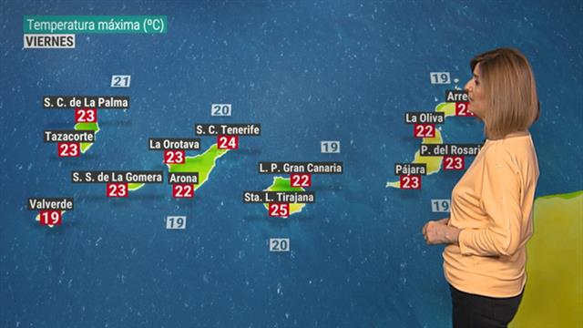 29/04/2022 00:01:03Tenemos por delante un fin de semana de estabilidad en Canarias y de temperaturas propias de la primavera. Valores que en muchas localidades van a rondar los 25ºC. Hoy de nuevo lo más destacado es el viento que sopla con rachas que han superado los 60-65 kmh. En cuanto al estado de los cielos tenemos nubosidad que se va desplazando de oeste a este, y que en las próximas horas irá abandonando Lanzarote y Fuerteventura. Las temperaturas previstas para hoy, 22ºC en Las Palmas de Gran Canaria, 24ºC Santa Cruz de Tenerife.