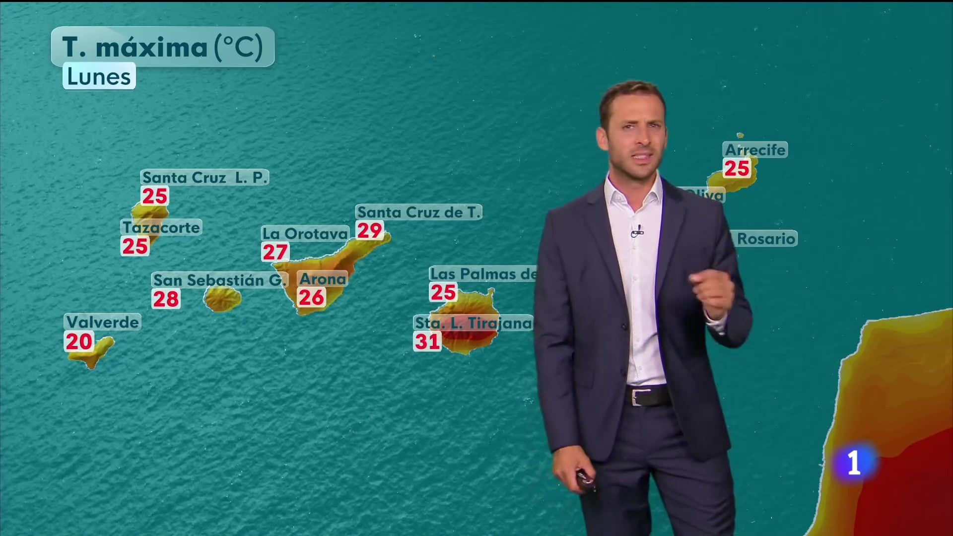 30/06/2025 00:01:02Comenzamos la semana con ambiente tranquilo en buena parte del archipiélago canario. Algo de calima en las islas más orientales que seguirá presente durante las próximas horas. Y algunas nubes hacia el norte de la isla de Gran Canaria. Por aquí, en el sur, especialmente en medianías, suele dar calor. Las máximas pueden pasar fácilmente incluso de los 33, 34 grados. En el resto, en general, por debajo de la barrera de los 30. De cara a la jornada de mañana será de nuevo un día de sol. Algunas nubes también hacia el norte de las islas de mayor relieve. Y máximas ligeramente más altas. Seguiremos con temperaturas dentro de lo habitual para la época del año. Valores cercanos a estos 27 grados en Santa Cruz de Tenerife. Ya bajan de los 30, por ejemplo, en Santa Lucía de Tirajana. 25, esperamos en Arrecife. Y con viento que puede dejar rachas localmente fuertes. Por lo que vuelven a activarse un día más los fenómenos. Tanto por viento como también por oleaje intenso.