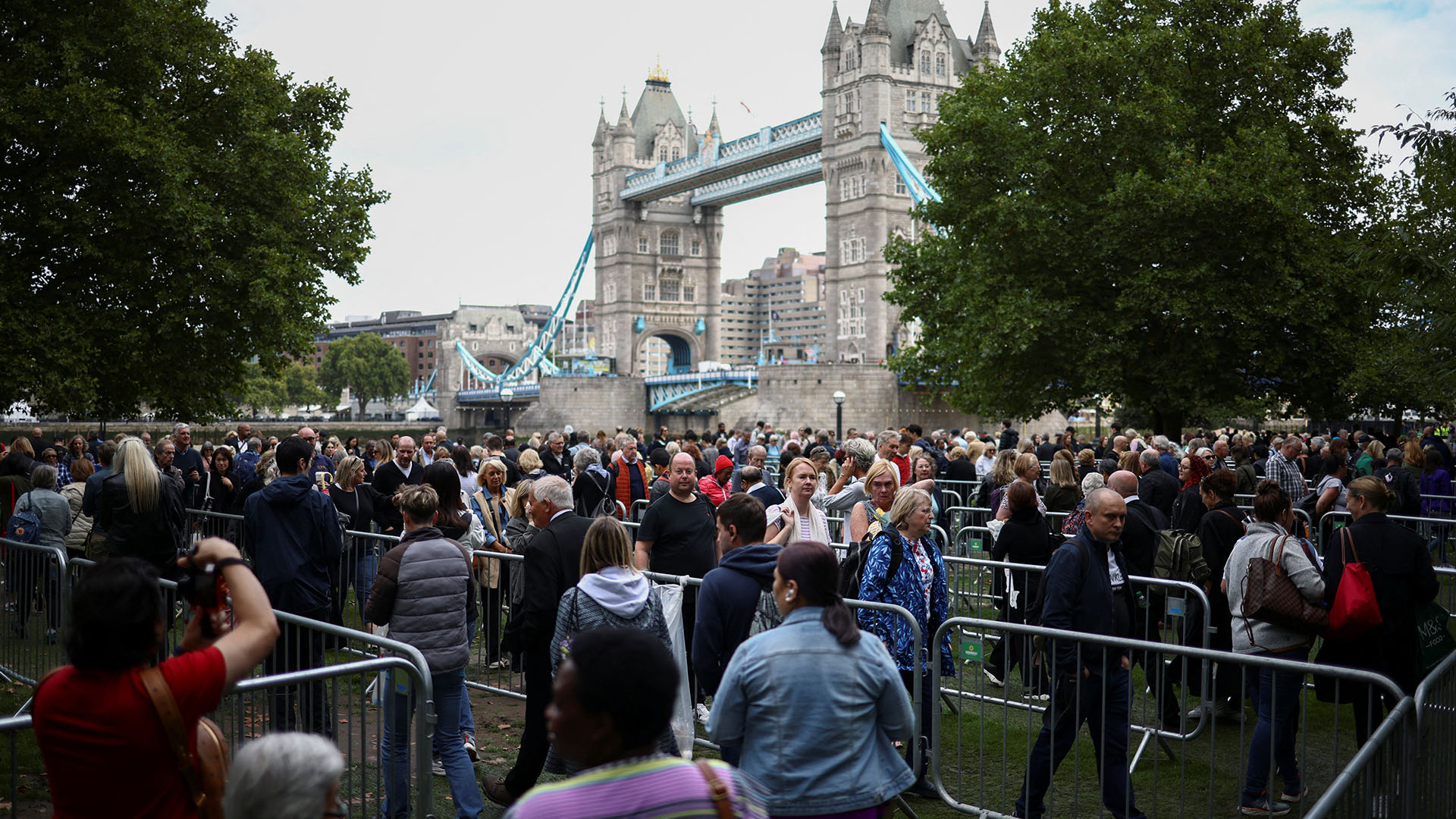 Las enormes colas que estamos viendo en Londres llegan a los 7 kilómetros y la espera para llegar al salón de westminster es de hasta 5 horas --...