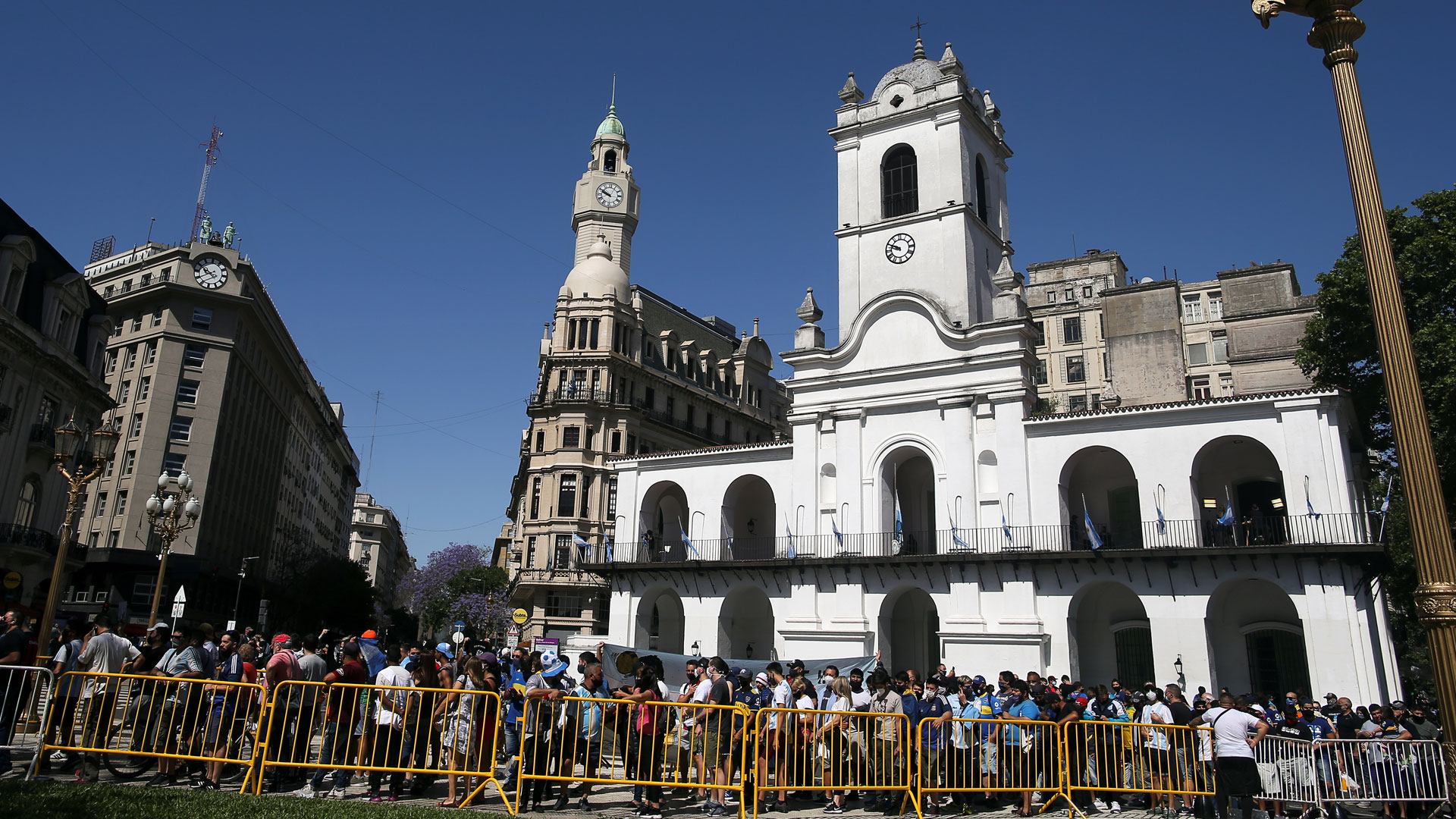 26/11/2020 00:05:44El féretro de Diego Armando Maradona cubierto por la bandera argentina y la camiseta de la selección con el número 10. Desfilando ante él, miles de...