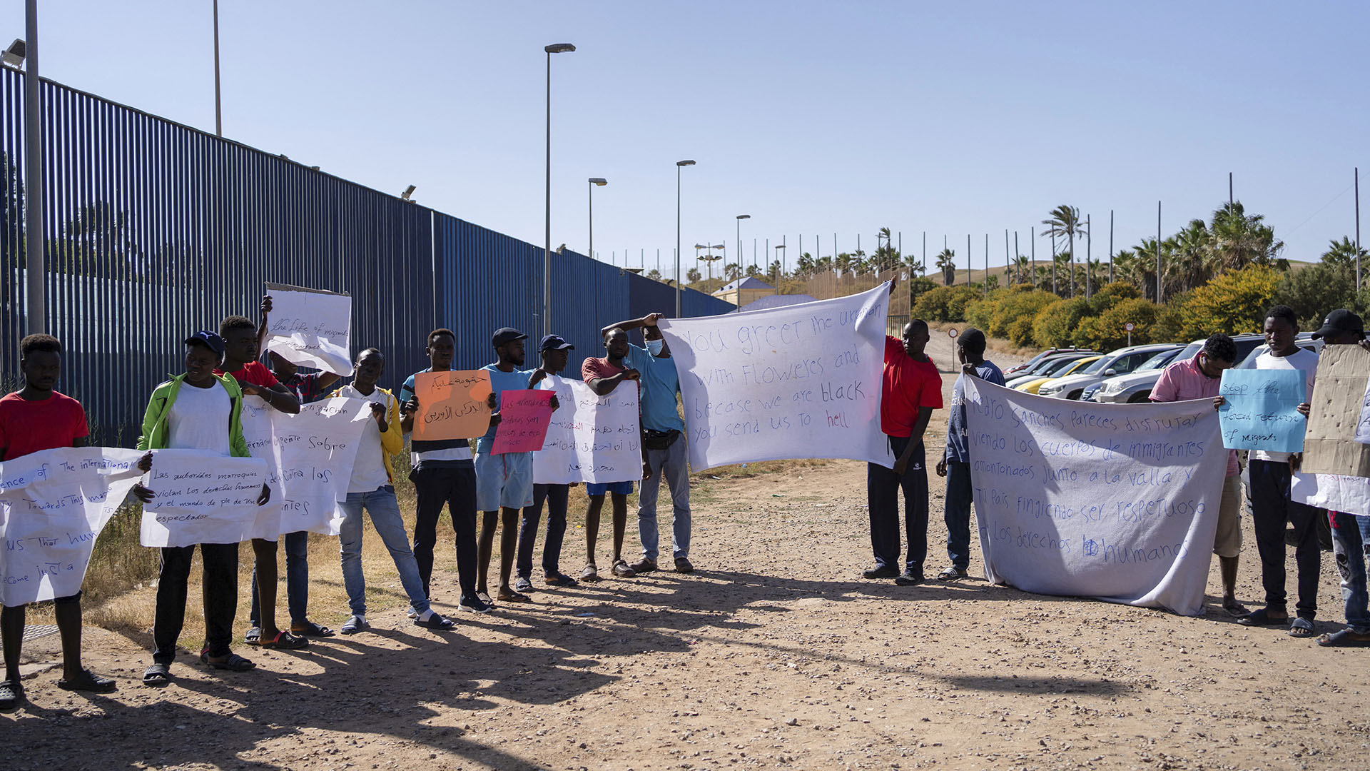 Son las imágenes grabadas por el equipo de TVE en Nador de los detenidos por el intento de salto a la valla de Melilla -- La portavoz del gobierno...