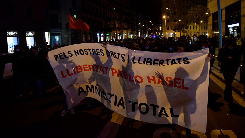 Manifestaciones en Madrid y en todas las capitales catalanes en protesta por Pablo Hasél. Unas protestas que transcurren con calma y con una...