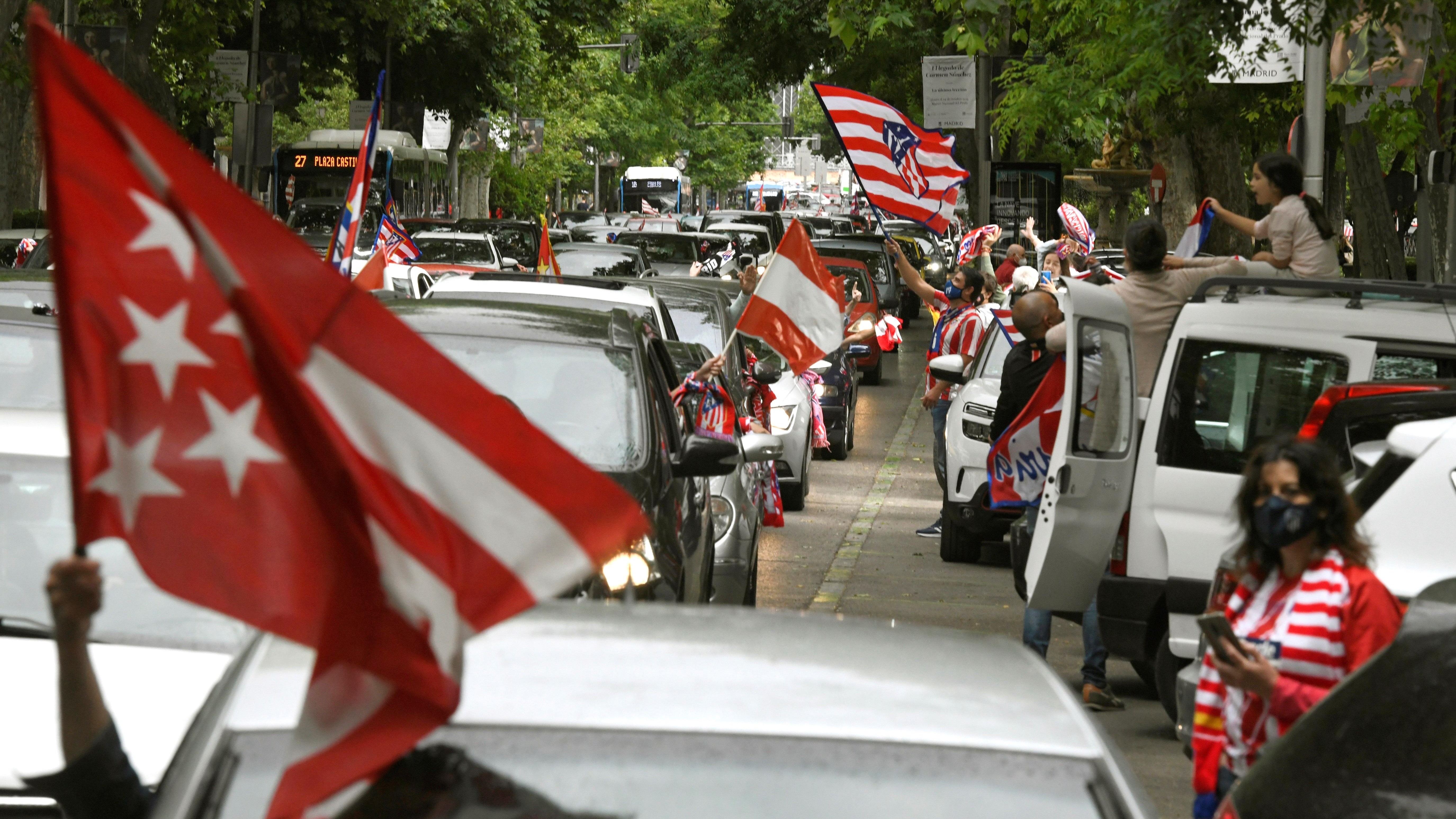 Celebración de los aficionados del Atlético de Madrid por el triunfo en La Liga. Caravana rojiblanca por el centro de la capital con centenares de...
