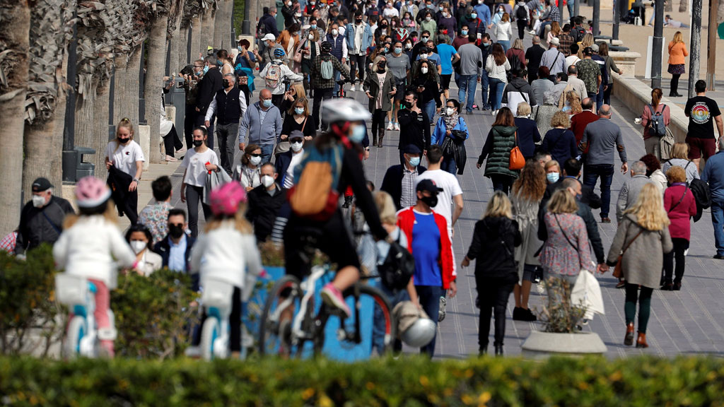 El inicio de la Semana Santa, con mucha gente de vacaciones, y el buen tiempo dejan imágenes poco habituales en plena pandemia. Mucha gente en las...