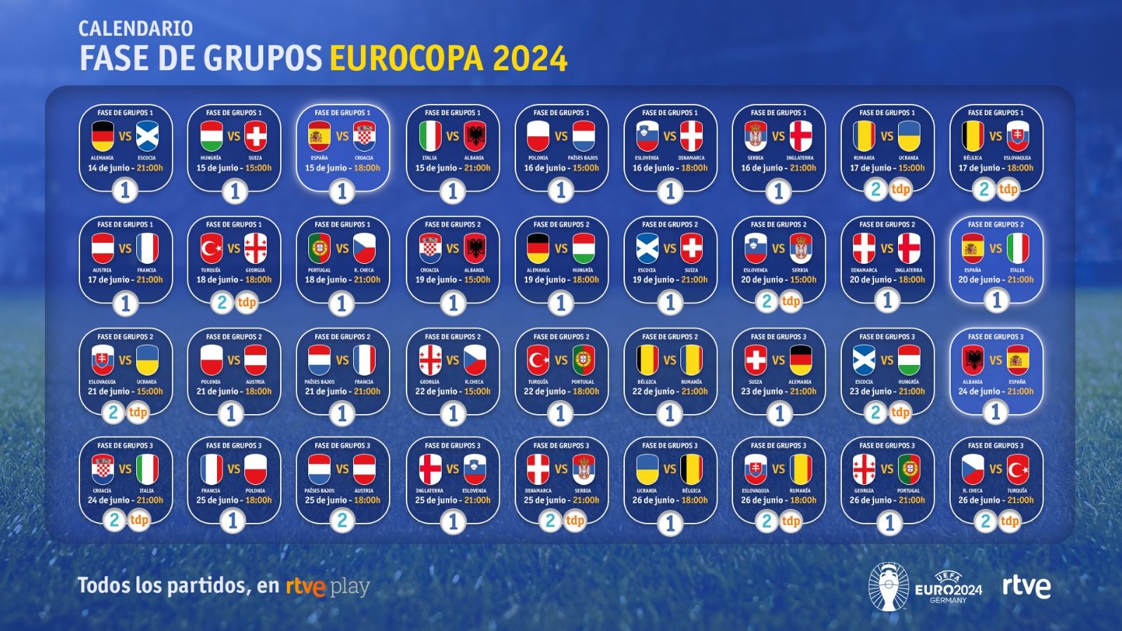 El calendario de la Eurocopa de Alemania 2024, al completo en RTVE