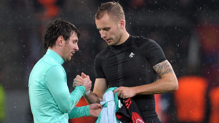 En el partido de Champions, Bayer Leverkusen-FC Barcelona, los defensas Kadlec y Friedrich, consiguieron sendas camisetas del astro barcelonista...