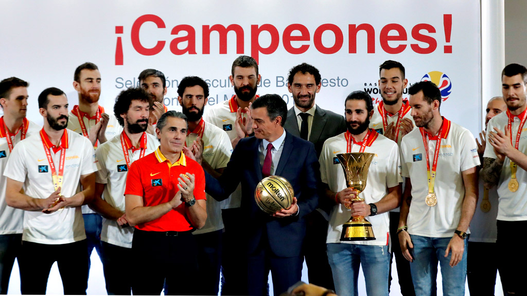La selección española de baloncesto ha sido recibida este lunes por el Rey Felipe VI y la Reina Letizia en el Palacio de la Zarzuela y por Pedro...