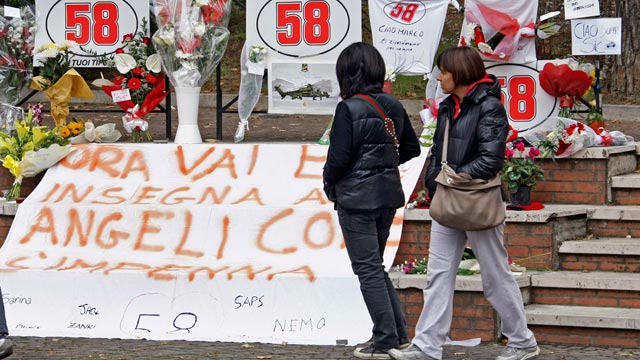 El carisma, el espíritu y la sencillez, son las cualidades de Marco Simoncelli que destacan los paisanos del fallecido piloto de MotoGP. Es en su pueblo de Coriano donde más se ha sentido la trágica muerte de Simoncelli, cuyos restos mortales llegarán este martes por la mañana a Italia. (24/10/2011)