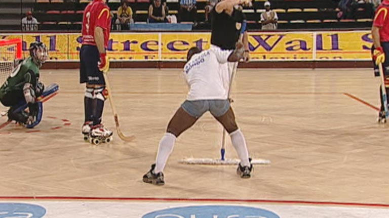 El "chico de la mopa", atracción del Mundial de Hockey de Angola