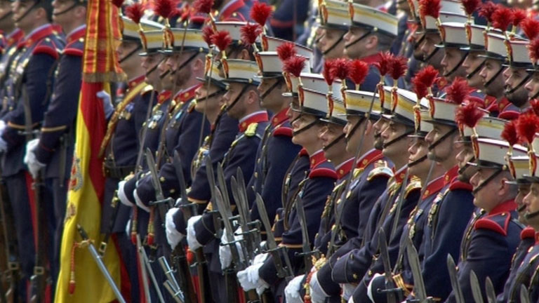 Treinta y siete aviones y helicópteros de los tres ejércitos han cruzado las calles de Madrid. Cazas y aviones de transporte y la patrulla Águila...